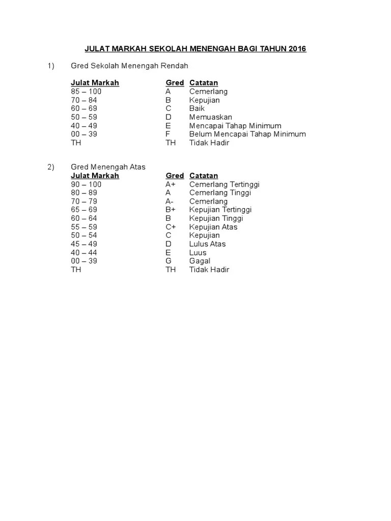 Gred Sekolah Menengah Atas : Gred Markah Peperiksaan Upsr Pt3 Dan Spm